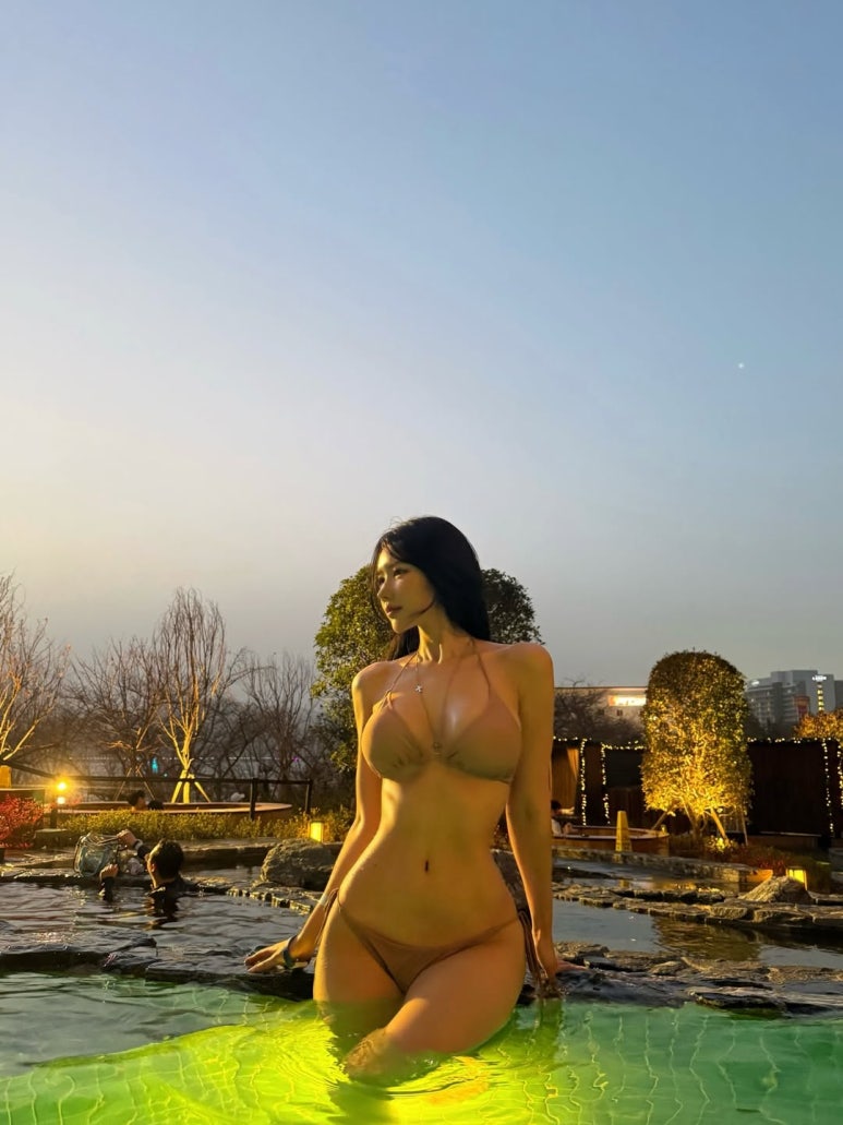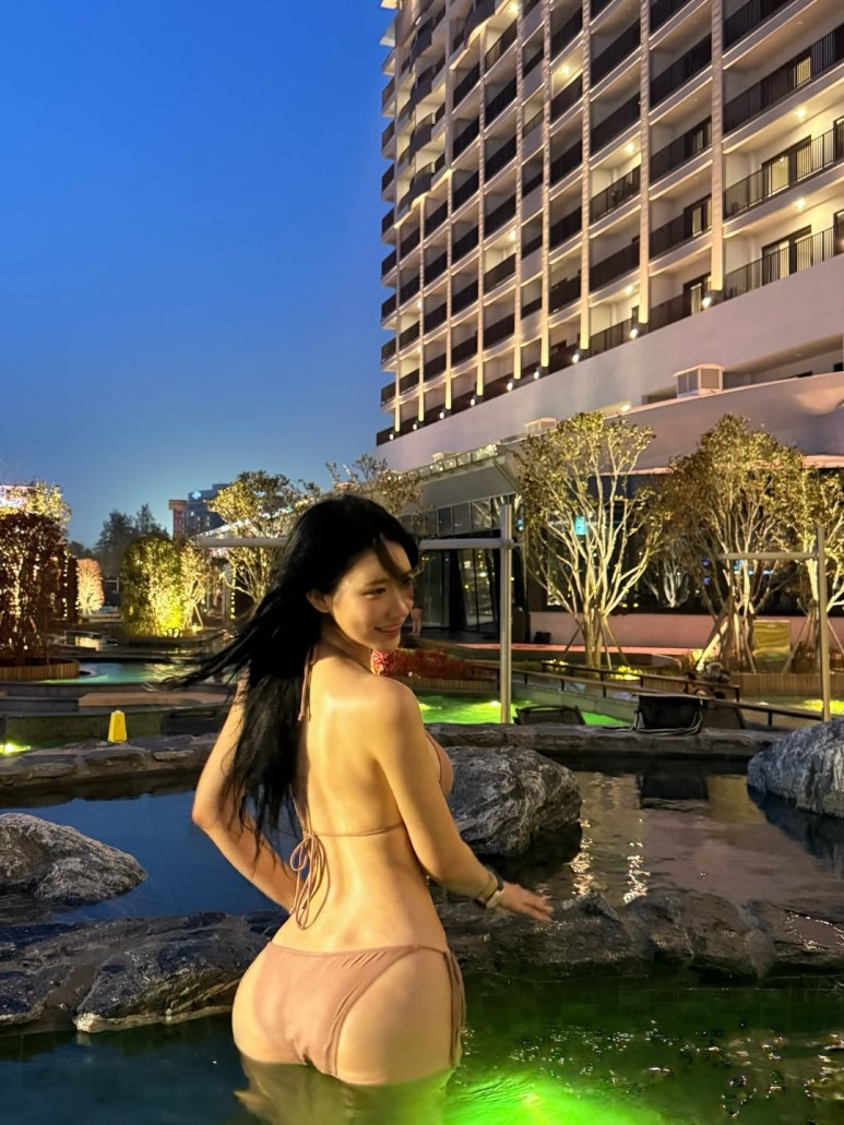 @star.1ikeu의 누드톤 비키니 스파 룩! 웨트 헤어&S라인으로 완성한 럭셔리 호캉스 무드