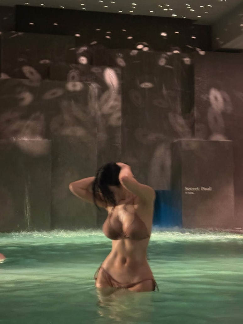누드톤 비키니 + 웨트 헤어 + 물광 피부 + Secret Pool = 럭셔리 호캉스 완성이에요.