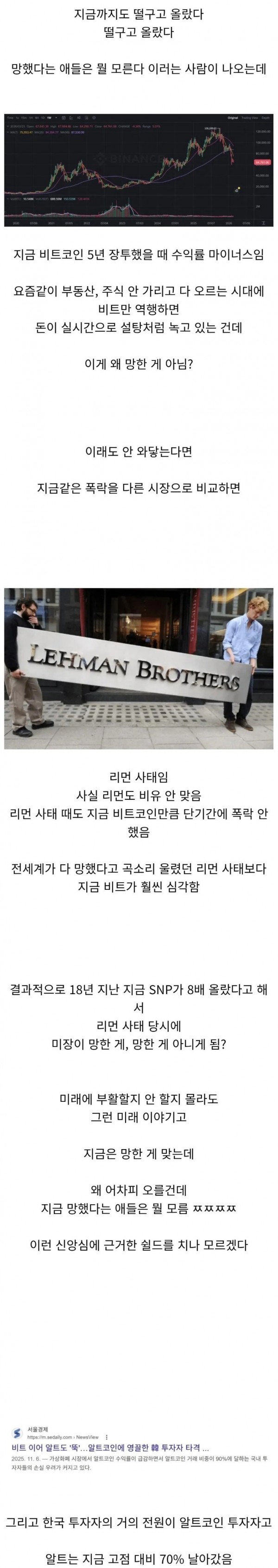 코인 망했다는 이야기만 나오면 나오는 일침
