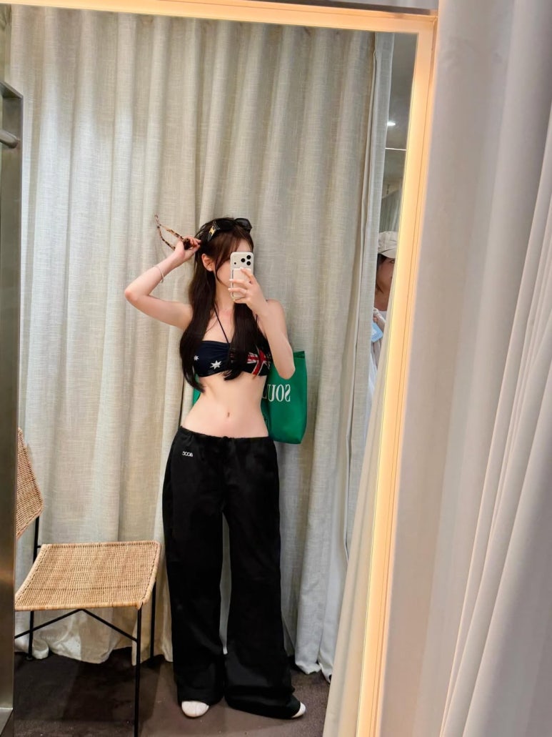 인플루언서 수비(SUVI, @suvinci_)가 선보인 호주 국기 패턴 네이비 비키니와 스킨톤 베이지 비키니 두 가지 스타일이 청량함과 우아함을 동시에 완성하며 주목받고 있어요.