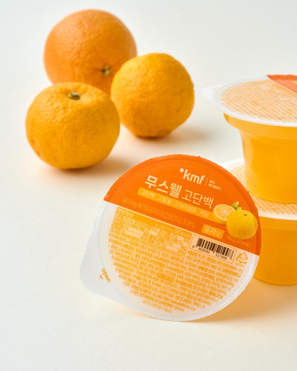 이 유자 젤리의 가장 큰 특징은 역시 영양 스펙이다. 100g 한 컵에 단백질 6g을 담았으며, 이는 계란 한 개 분량에 해당한다. 여기에 근육 건강에 필수적인 BCAA와 고칼슘까지 더해져 영양의 밀도를 높였다.