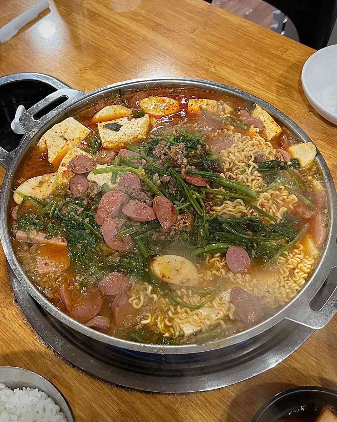미나리가 들어가 더욱 깔끔한 부대찌개를 맛볼 수 있는 역삼동 ‘대우부대찌개’. 이미 유명한 부대찌개 맛집이었던 이 집은 성시경이 유튜브에서 소개한 이후로 더욱 유명세를 떨치고 있다. 대표 메뉴는 ‘부대찌개’. 전통적인 느낌의 진한 국물은 채소를 우린 육수에 다진 한우를 넣어 더욱 감칠맛을 살렸다. 여기에 향긋한 미나리가 더해져 자극적인 맛을 줄여준다. 민찌가 넉넉히 들어가 밥에 비벼 먹으면 더욱 맛있게 먹을 수 있다.