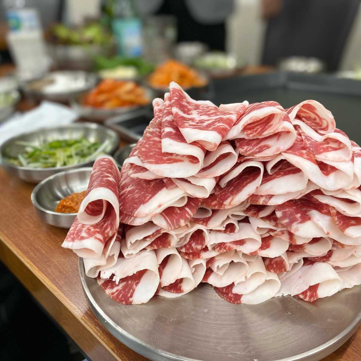 한우차돌박이 30,000원 생삼겹살 19,000원 된장찌개 2,000원
