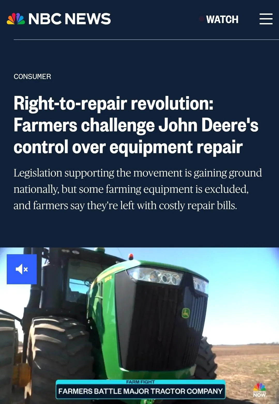 존 디어는 농부들의 '수리할 권리' 를 거부하면서 이런
