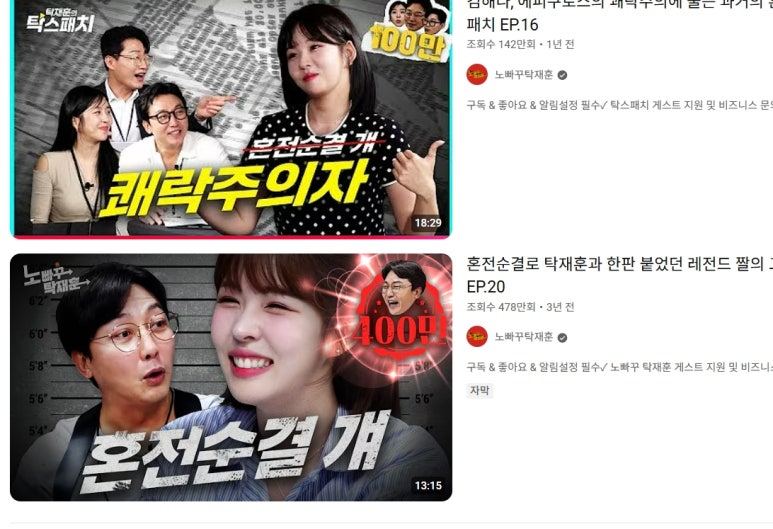 노빠꾸 탁재훈 등 유튜브에서도