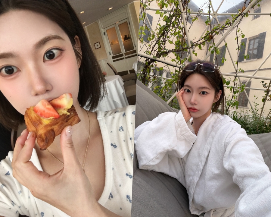 공개한 사진 속 박나언은 블랙 모노그램 패턴의 비키니를 입고 선베드 위에 앉아 끈을 정리하는 모습이다. 군더더기 없는 슬림한 실루엣과 탄탄한 복부 라인이 자연스럽게 드러나며 눈길을 끌었다.