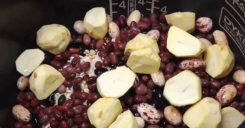 이제 물 맞추기가 중요하다. 불린 쌀과 잡곡을 모두 넣은 뒤 평소 잡곡밥보다 물을 약간 적게 잡는다. 일반 잡곡밥이 쌀 양 대비 물을 1.2배 정도 넣는다면, 오곡밥은 1.1배 정도로 줄이는 것이 안전하다. 이미 불린 곡물 안에 수분이 충분히 들어 있기 때문이다.