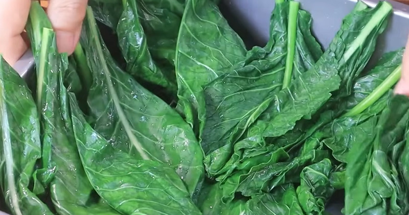 절인 케일은 찬물에 가볍게 헹궈 과한 염분을 제거한 뒤 체에 밭쳐 물기를 뺀다. 물기가 너무 많으면 양념이 묽어지므로 손으로 가볍게 눌러 수분을 제거하는 것이 좋다.