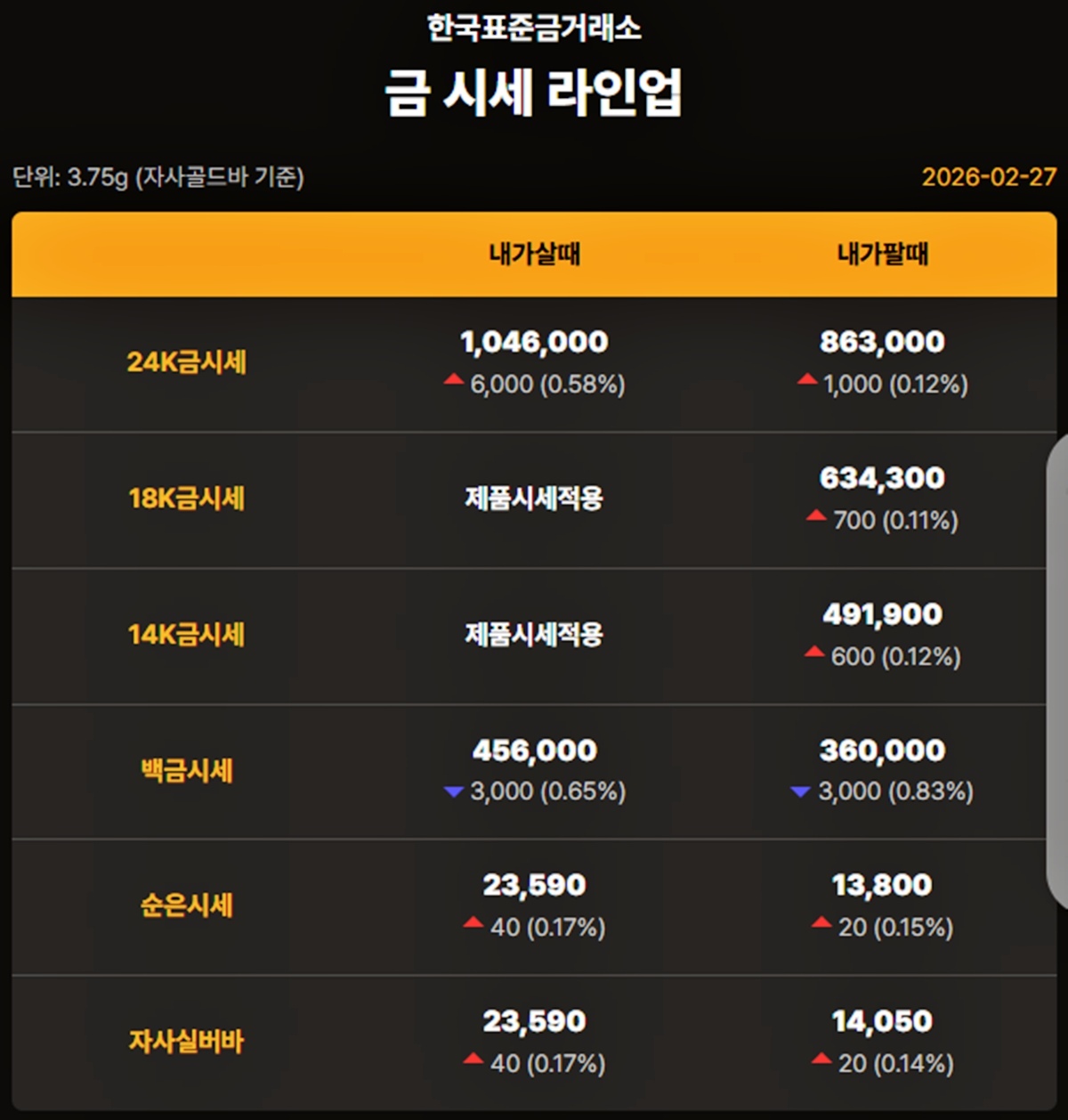 순금 : 매입가 104만 6000원 / 매도가 86만 3000원