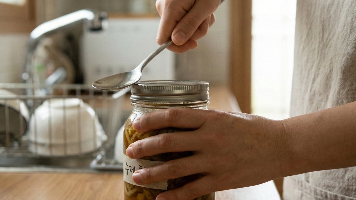 가장 확실한 도구는 숟가락이다. 숟가락 끝부분을 병뚜껑과 유리병 사이의 좁은 틈새에 끼워 넣는다. 그다음 지렛대 원리를 이용해 숟가락 손잡이를 위로 살짝 들어 올린다. 이때 뚜껑이 미세하게 벌어지면서 "픽" 하고 공기가 빠져나가는 소리가 들릴 것이다. 이 소리가 났다면 이미 뚜껑은 열린 것이나 다름없다.