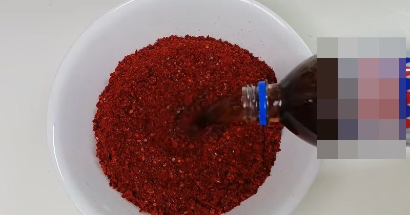 콜라 고추장의 출발점은 고춧가루다. 고운 고춧가루에 콜라를 먼저 부어 불리듯 섞는다. 이 과정이 중요한 이유는 고춧가루의 건조한 입자가 탄산과 수분을 머금으며 빠르게 퍼지기 때문이다. 콜라 속 탄산은 일시적으로 기포를 만들며 고춧가루 사이사이에 스며든다. 설탕이 이미 녹아 있는 상태라 별도의 당을 녹일 필요도 없다.