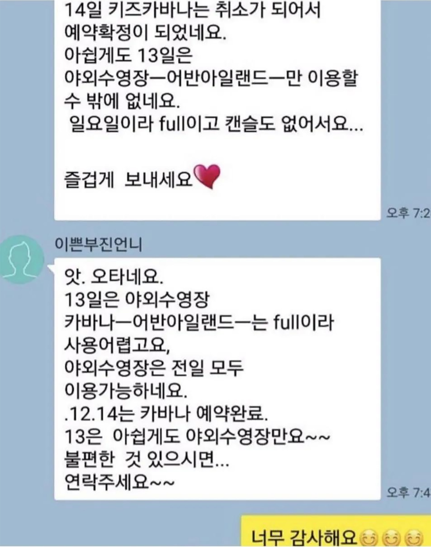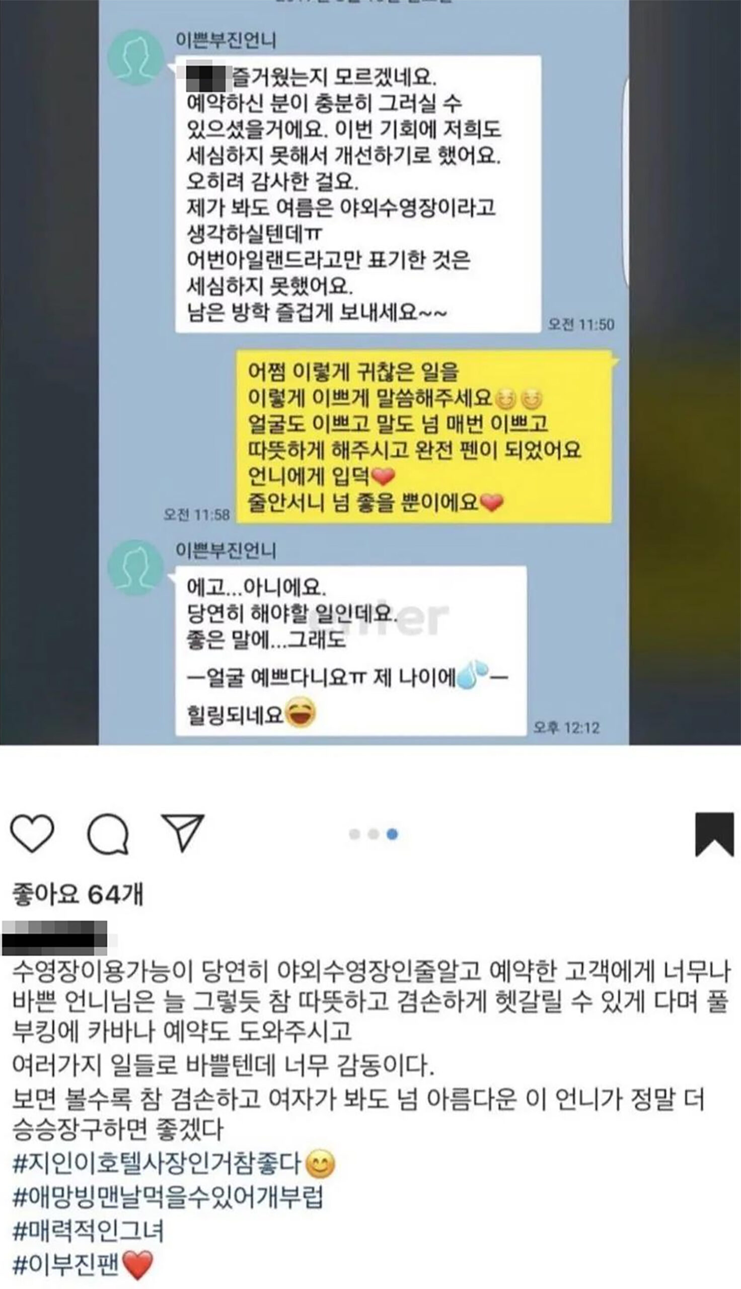 놀라운 점은 그다음 행보였다. 이 사장은 해당 학부모를 위해 야외 수영장 이용이 가능한 다른 패키지를 상세히 제안했을 뿐만 아니라, 본인이 직접 예약 절차까지 도와준 것으로 알려졌다.