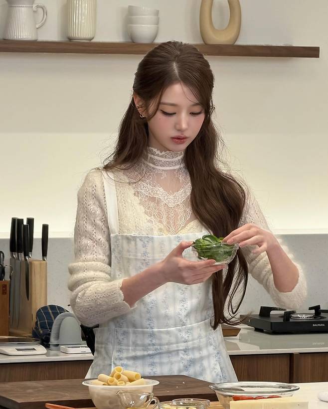 장원영이 보여준 이번 모습은 밝고 깨끗한 주방을 배경으로 본인만의 맑고 우아한 매력을 극대화한 감각적인 차림이에요.
