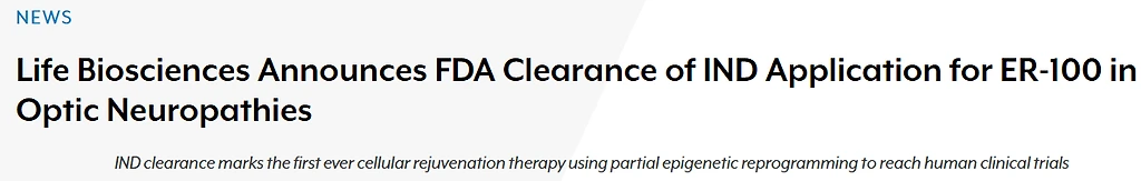 FDA에서 승인한 첫 '역노화' 임상으로 안구노화질환에 대한 임상 진행예정임.