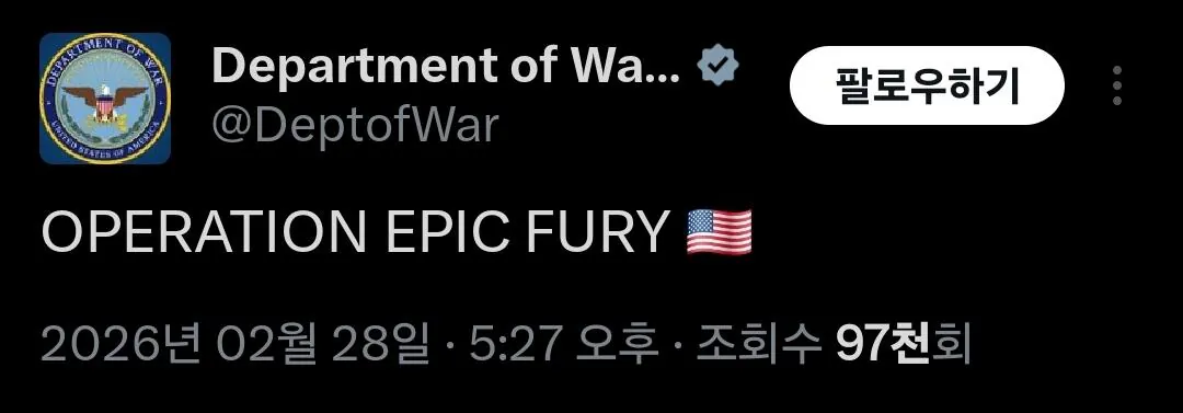 미국 전쟁부 “작전명 극대노”