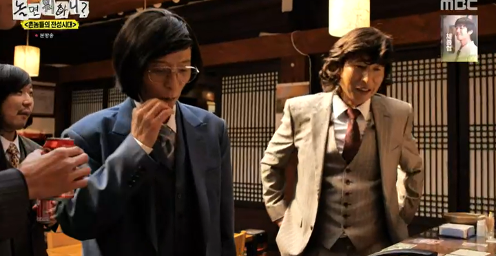 이날 방송에서는 유재석, 하하, 허경환, 주우재, 양상국이 영화 ‘범죄와의 전쟁’ 분장으로 변신해 부산 사투리 대결과 계산 내기 콩트로 눈길을 끌었다.