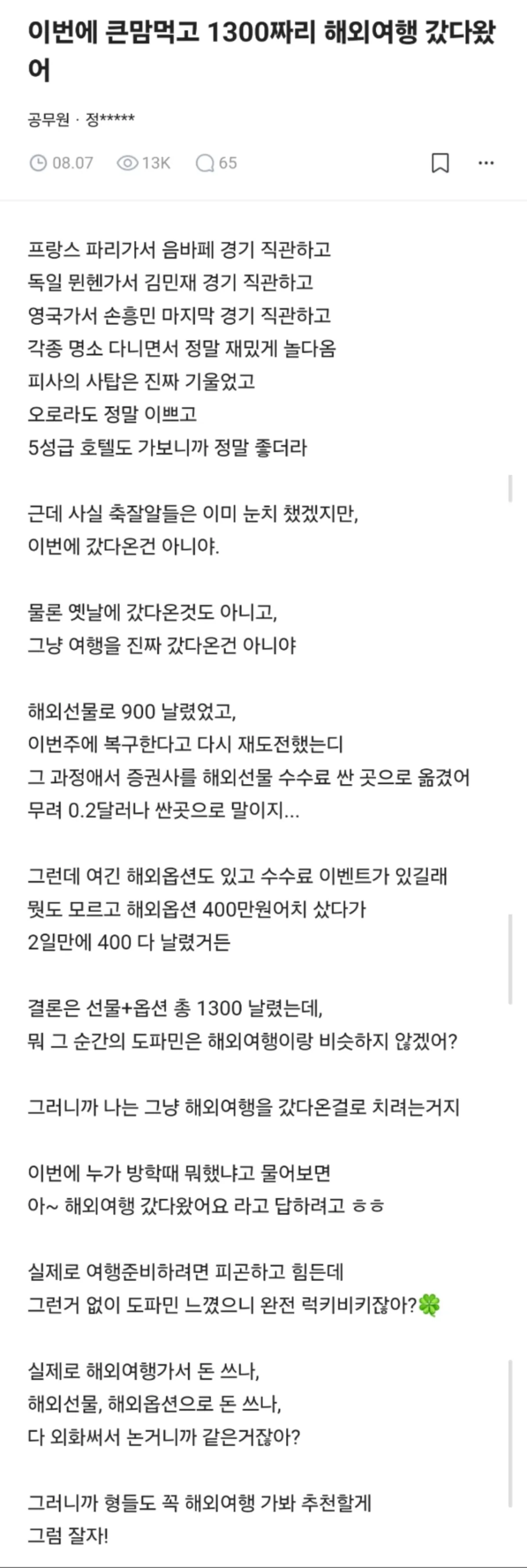 큰맘 먹고 해외여행에 1,300만원 쓴 블라인