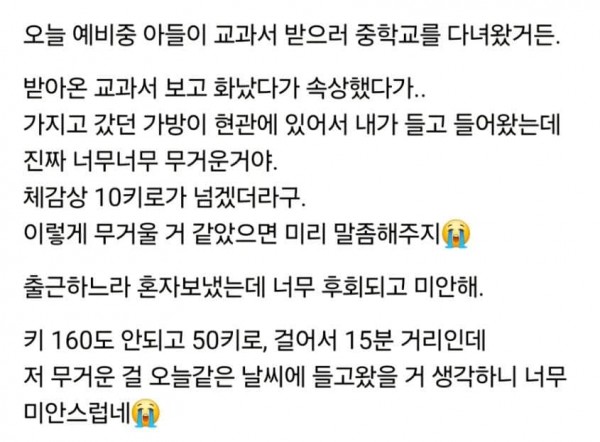 예비중1 아들이 가져온 교과서가 무거운데 말 좀 해주지
