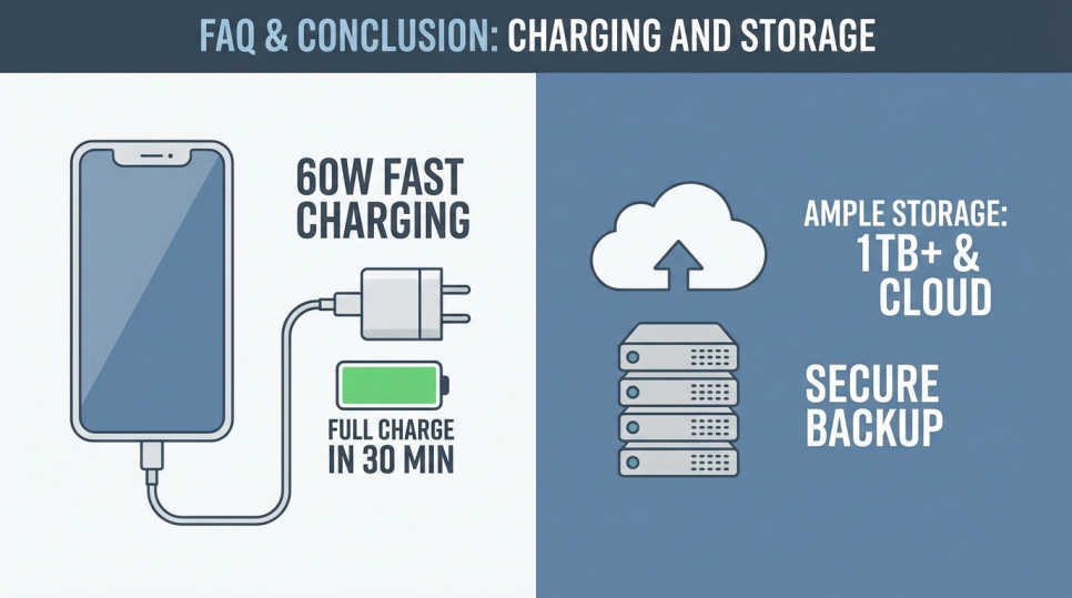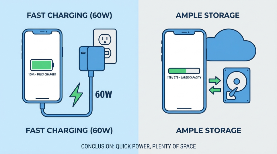 충전 속도: 60W 유선 고속 충전 지원 (기존 45W에서 대폭 업그레이드)