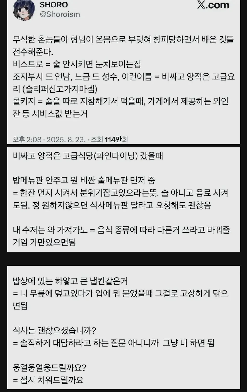 고급식당(파인다이닝) 갔을 때의 식사 매너