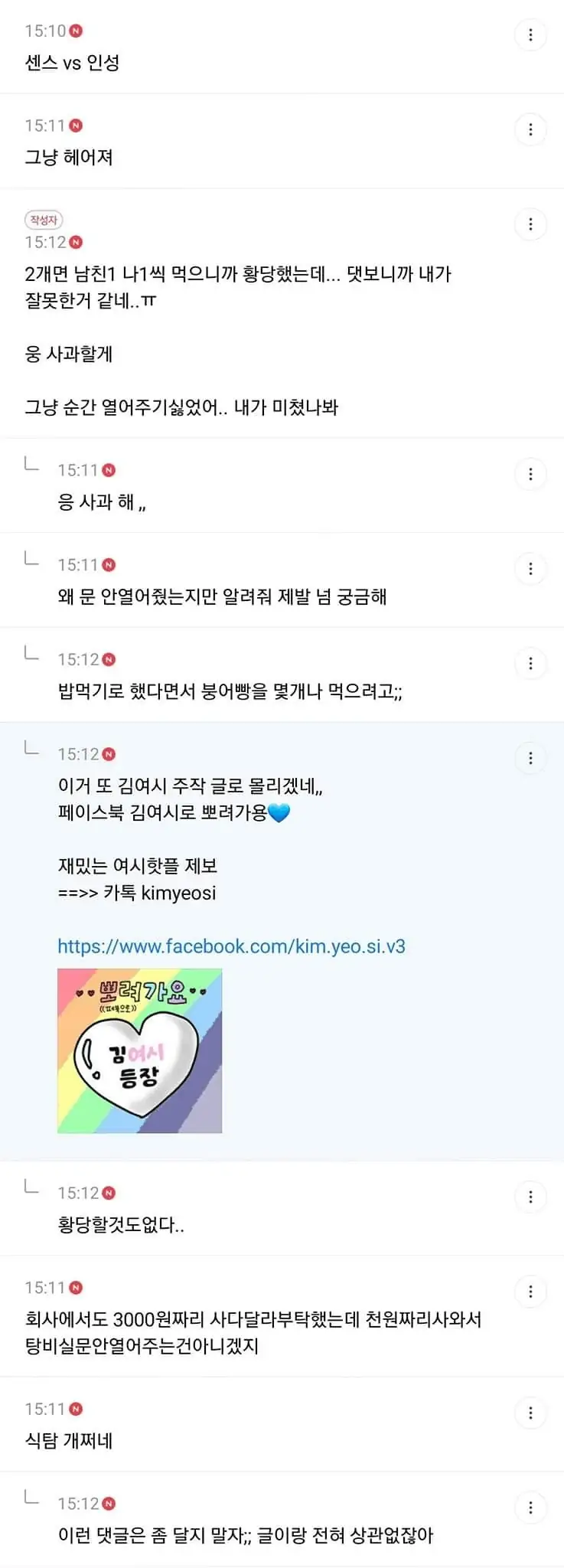 붕어빵 천원치 사온 남친 왤케 정떨어지지
