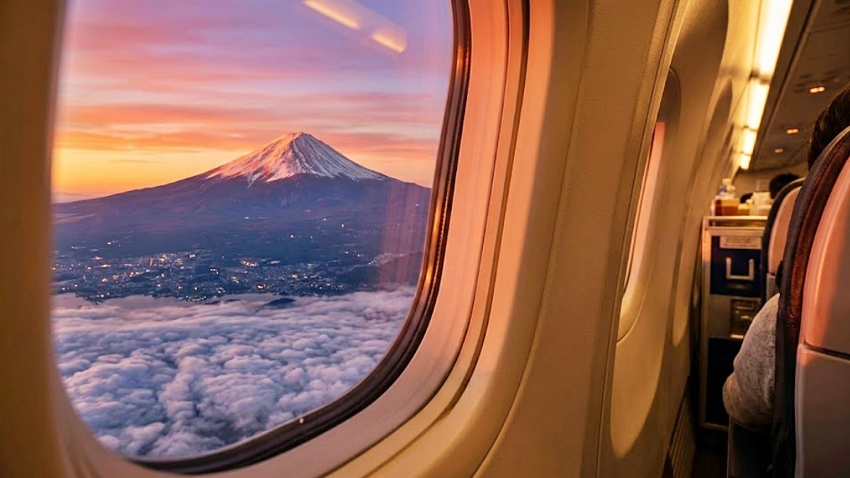 일본 노선에서 대표적인 경관으로는 후지산이 꼽힌다. 도쿄(하네다·나리타)를 출발해 오사카, 후쿠오카 또는 한국 방면으로 향하는 항공편은 왼쪽 창가 좌석에서 후지산을 볼 가능성이 상대적으로 높다. 이륙 후 약 5~15분 사이 시야가 트이면 후지산이 보이는 경우가 있으며, 특히 맑은 날 오전 시간대에는 더 선명하게 관측될 수 있다. 반대로 오사카나 후쿠오카에서 도쿄로 향하는 노선에서는 오른쪽 창가 좌석이 유리한 경우가 있다. 착륙 전 하강 과정에서 후지산이 시야에 들어오는 경우가 있기 때문이다.
