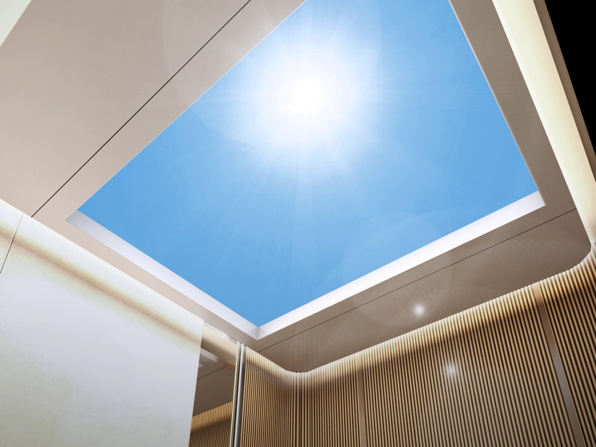 디자인의 핵심은 천장에 적용된 인공 스카이라이트 조명이다. 밀폐감이 강한 승강기 내부에 푸른 하늘을 연상시키는 밝고 자연스러운 빛을 구현해, 탑승객이 잠시나마 개방감을 느낄 수 있도록 했다. 여기에 곡선미를 강조한 비대칭 입면 구성을 더해 시각적 긴장 요소를 완화하고, 보다 부드러운 공간 경험을 유도했다.