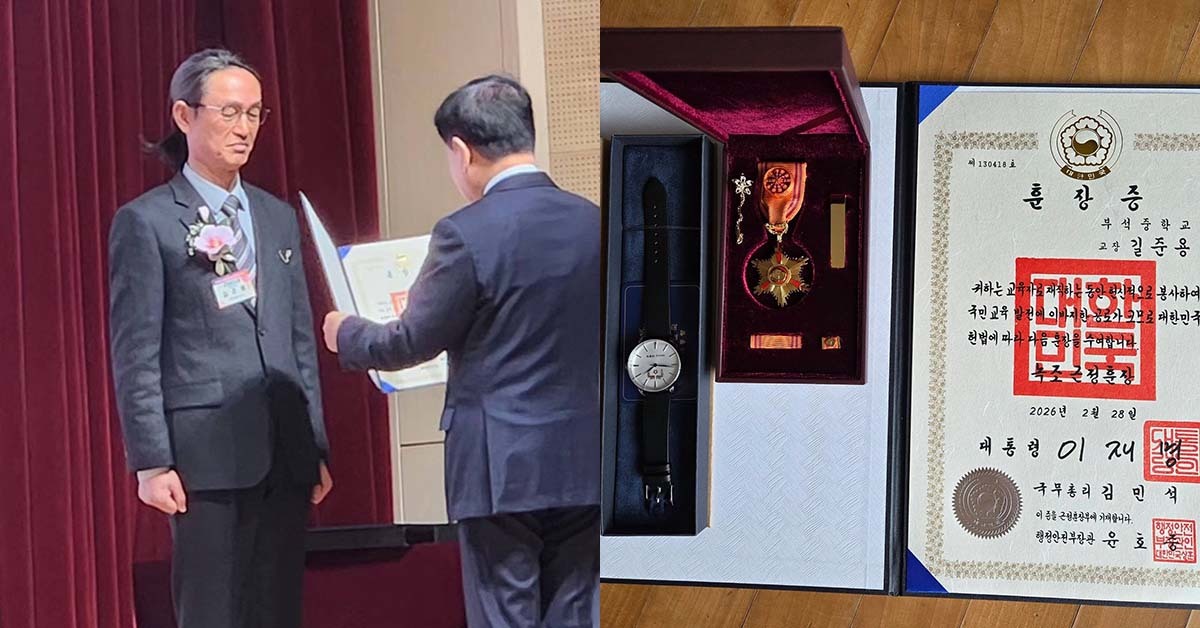 윤석열 전 대통령이 수여자인 훈장을 거부한 전직 중학교장이 3년 만에 이재명 대통령 명의의 훈장을 받았다.