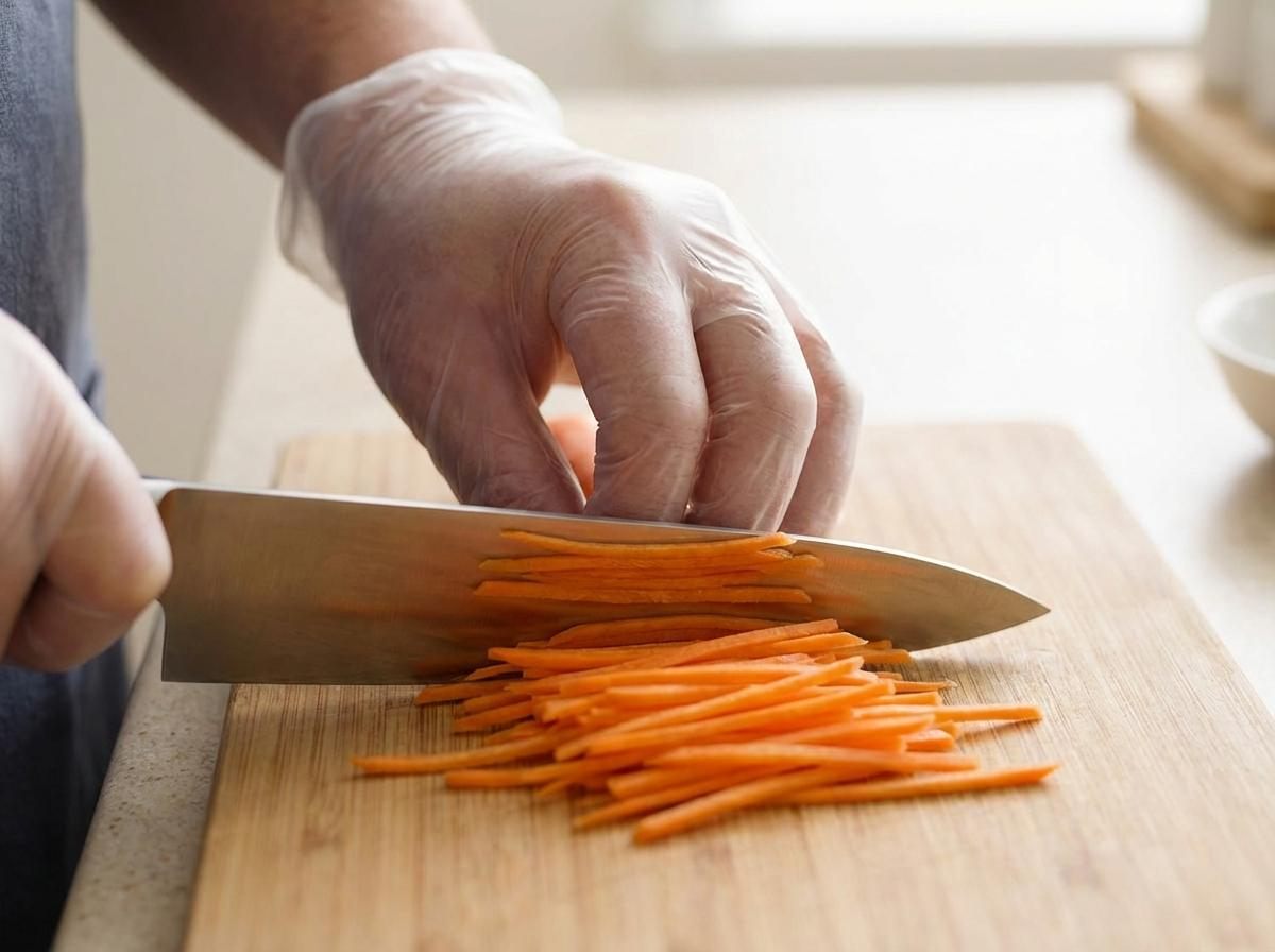 이 방식이 실제로 체감되는 이유는 작업 정밀도 때문이다. 손가락 끝이 밀착되면 채 썰기나 고기 손질 시 칼날과 장갑이 함께 밀려 들어가는 위험이 줄어든다. 장갑 끝이 칼에 스치며 잘리는 상황도 예방할 수 있다. 식재료를 집을 때도 힘 전달이 직접적이다. 미끄러짐이 줄어들어 재료를 더 안정적으로 잡을 수 있다.