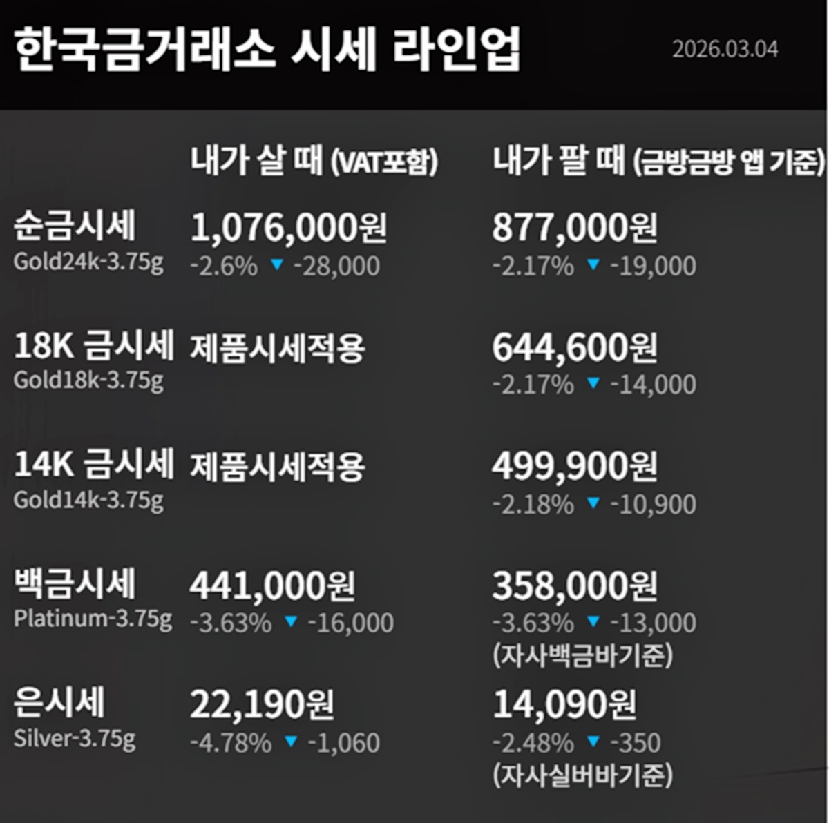 순금 : 매입가 107만 6000원 / 매도가 87만 7000원