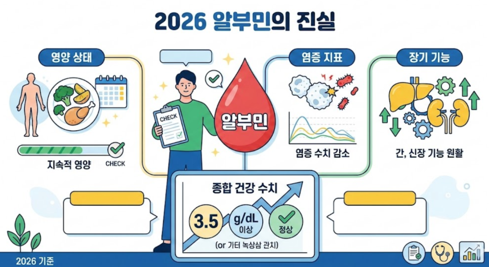 만성 염증 상태: 몸속에 심한 염증이 있으면 간은 알부민 대신 염증 대응 단백질을 만드느라 수치가 일시적으로 낮아질 수 있습니다.