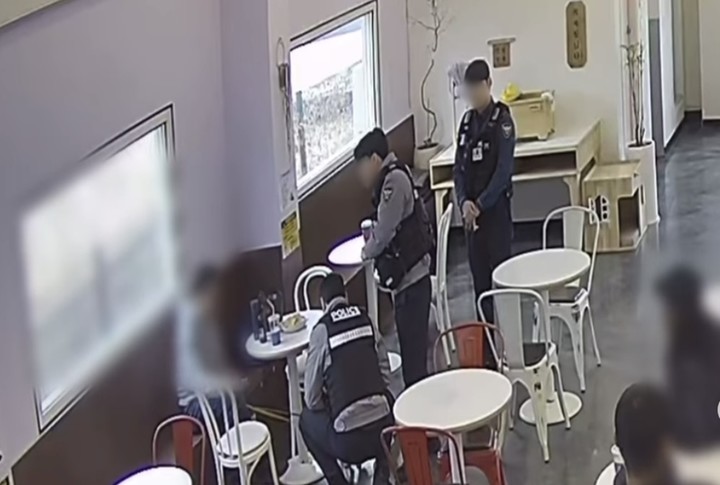 이상아가 공개한 매장 내부 CCTV 영상에는 현장에 도착한 경찰이 손님의 주장을 듣는 장면이 포착됐다.