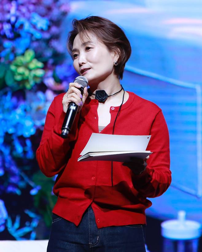 "강렬한 레드 가디건으로 완성한 무대 위의 독보적 존재감" 박경림이 보여준 열정적인 패션