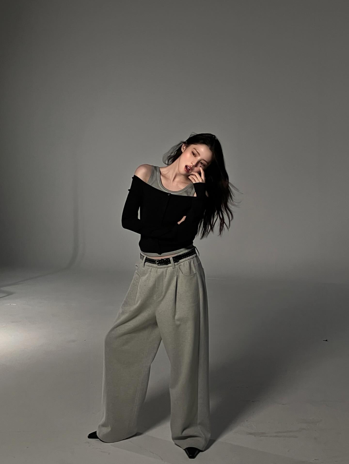 공개된 보에서 한소희는 블랙 슬리브리스 톱을 입고 카메라 앞에 섰다. 긴 머리를 자연스럽게 흩날리며 고개를 살짝 들어 올린 포즈만으로도 특유의 도회적이고 치명적인 분위기를 완성했다.