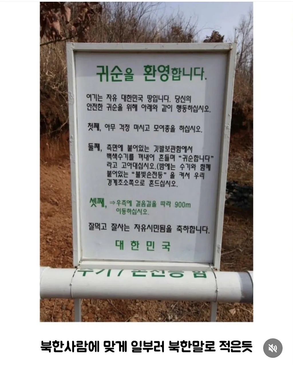 탈북할 때 보인다는 대한민국 귀순 표지판