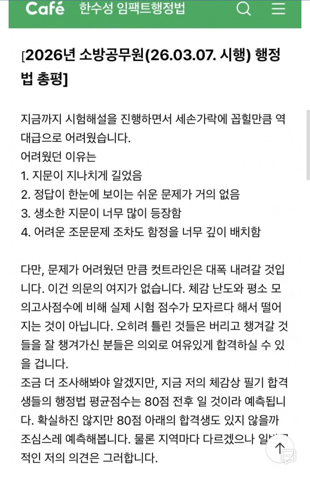 어제 3월 7일 9급 소방공무원시험이 있었음