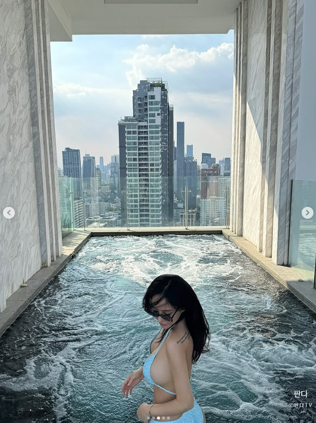 바로 인플루언서 김시원 비키니 사진이었는데, 세상에... 도심 빌딩 숲이랑 하늘색 수영장이 그녀의 착장과 어찌나 잘 어울리던지!