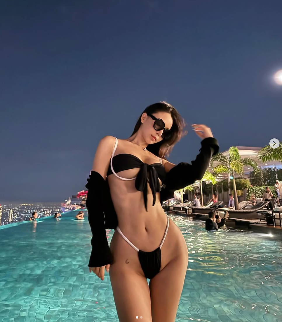 화려한 장식 없이도 심플한 블랙 비키니 하나로 독보적인 아우라를 뽐내는 모습이 참 부러웠답니다.