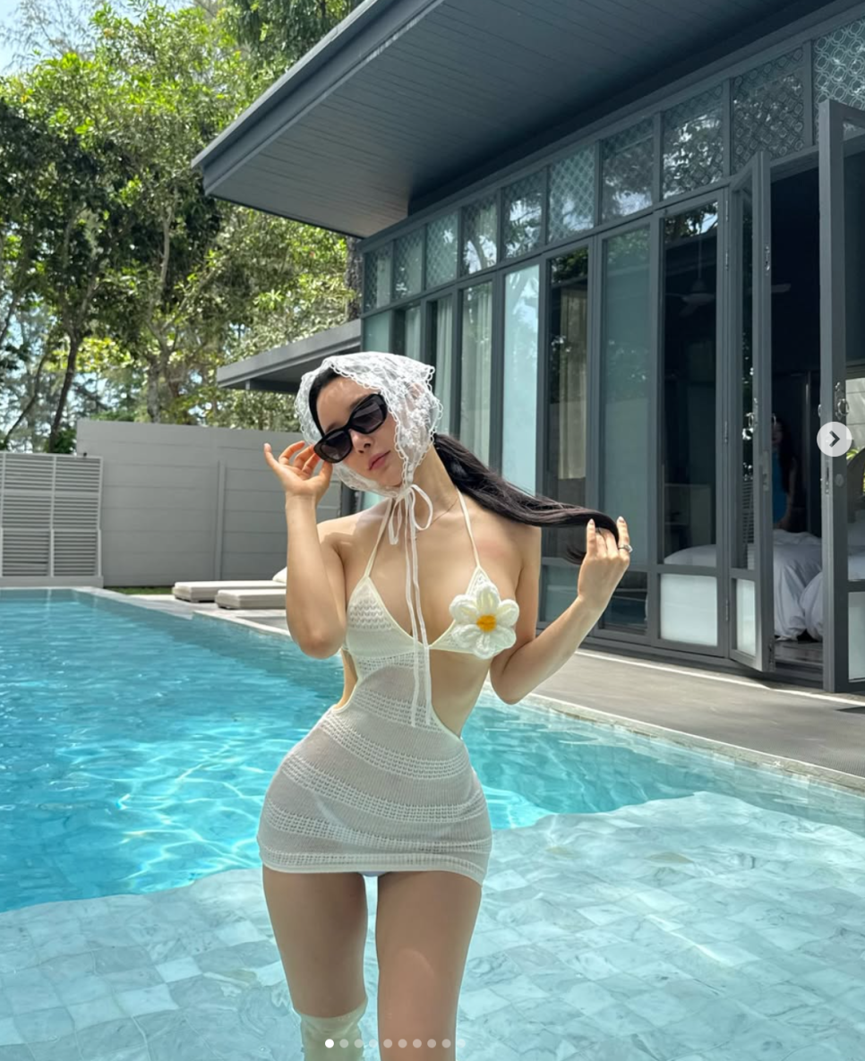박수연 님 화보를 보면 유독 블 계열의 비키니가 눈에 들어오더라구요. 야외 수영장의 맑은 물빛이랑 어우러져서 훨씬 생기 있어 보였거든요.