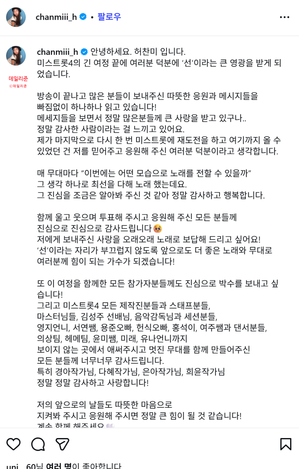 허찬미, 미스트롯4 준우승 소감은? 팬들의 믿음이 원동력!