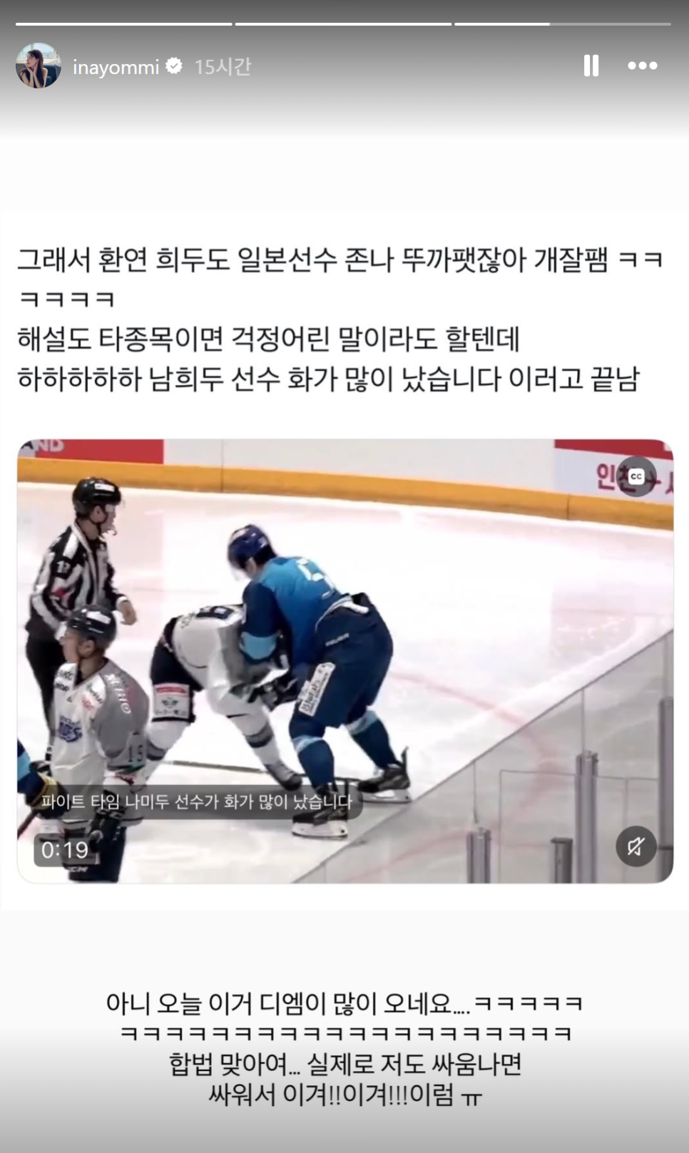 남희두 몸싸움 영상에 등판한 이나연 응원 멘트