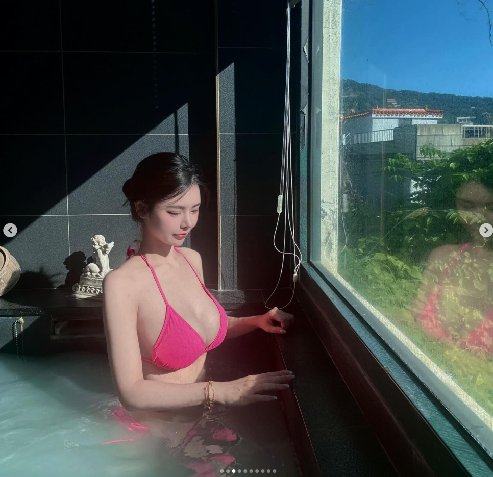 이번에 공개된 치치님의 온천 룩, 진짜 레전드 아닌가요? 💖 자칫 답답해 보일 수 있는 실내에서도 쨍한 핑크 컬러를 선택하니까 시선이 확 집중되더라구요.