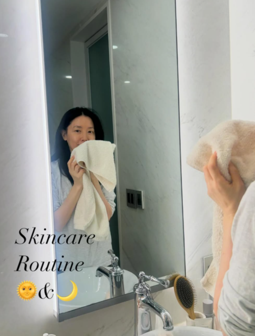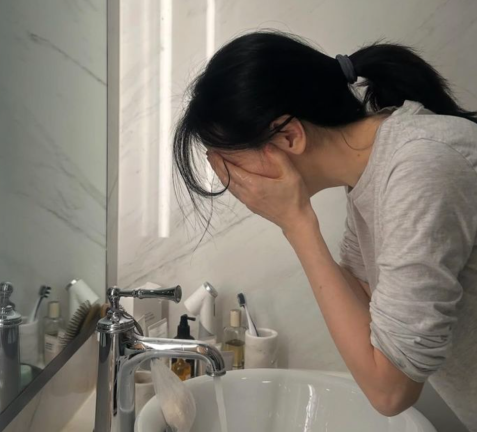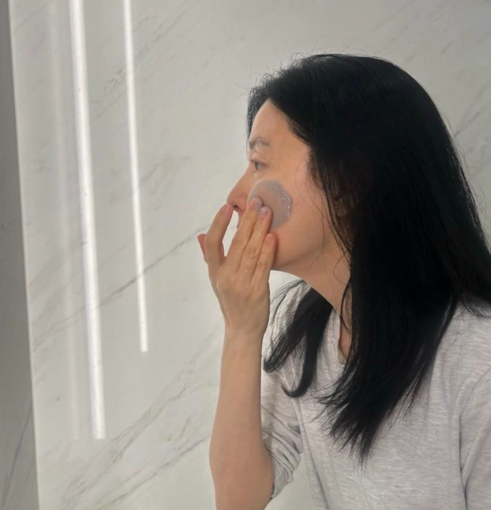 세안할 때 손의 방향 하나도 남달라요. 아래에서 위로 닦아내며 피부 처짐을 예방하고, 수건을 쓸 때도 문지르지 않고 톡톡 눌러 물기만 제거하는 식이죠.