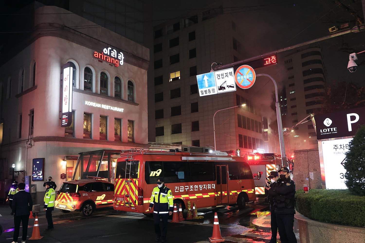 윤호중 행정안전부 장관은 소방청·경찰청·서울시·중구 등 관계기관에 모든 가용 인력과 장비를 총동원해 인명 구조와 화재 진압에 총력을 다하고, 소방대원 안전사고가 발생하지 않도록 만전을 기해 달라고 지시했다. 오세훈 서울시장도 "화재 현장 수습에 만전을 기하고 외국인 관광객 등 피해자들이 불편을 겪지 않도록 임시주거시설 지원과 병원 이송 등 필요한 지원에 총력을 다하라"고 지시했다.