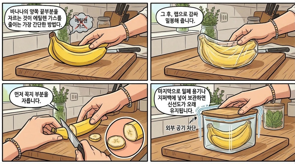 과일 한 송이를 오래 두고 먹는 일은 생각보다 쉽지 않다. 하지만 작은 보관 방법 하나만 바꿔도 음식 낭비를 줄일 수 있다. 다음번 장을 보고 돌아와 바나나를 꺼내 들었다면, 잠시 칼을 들어 양쪽 끝을 먼저 잘라보자. 그렇게 시작된 작은 습관이 바나나를 더 오래, 더 맛있게 즐길 수 있는 알뜰한 비결이 될지도 모른다.