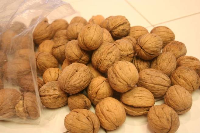 호두는 공기 중에 오래 노출되면 산패되기 쉬우므로 가급적 껍질째 보관하다가 바로 까서 드시는 것이 좋으며, 하루 5~7알 정도가 적당합니다.