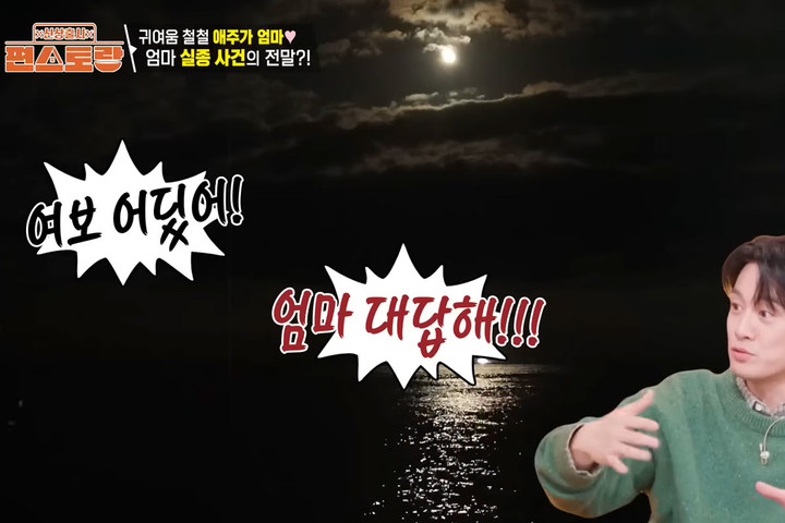 13일 방송 화면에서 오상진은 어머니와 곱창전골을 만들며, 과거 어머니가 바닷가에서 실종됐던 일화를 조심스럽게 언급했다.