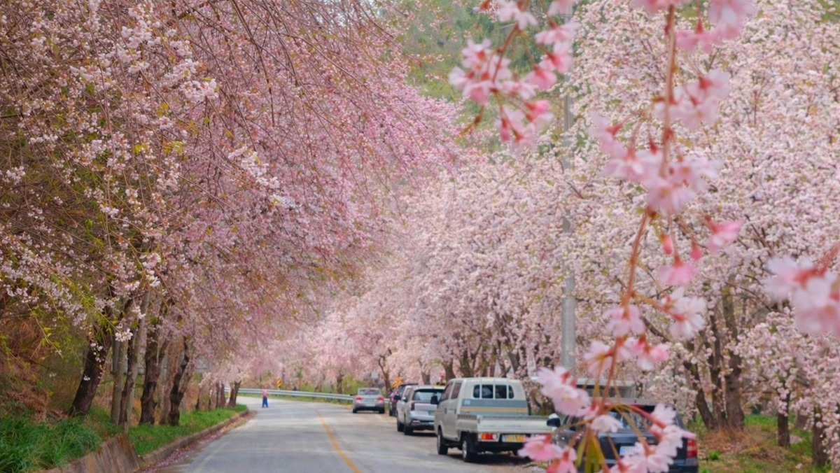 “분홍 폭포가 쏟아진다”… 5km 내내 핑크빛으로 물든 ‘국내 유일’ 수양벚꽃길