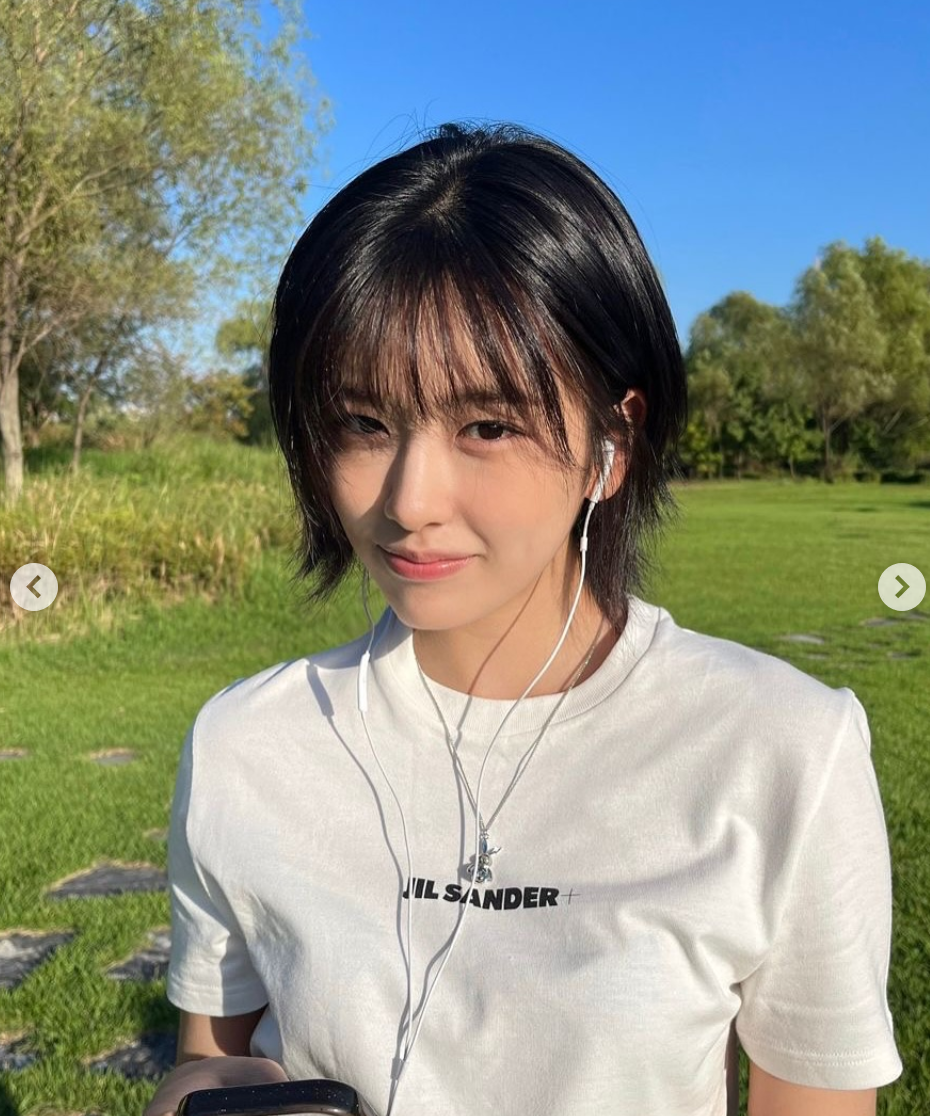 안유진 단발 허쉬컷 스타일 역시 앞머리를 내리면 러블리하고 어려 보이는 느낌이 강해지고, 앞머리 없이 연출하면 도시적이면서도 성숙한 인상을 주더라구요.