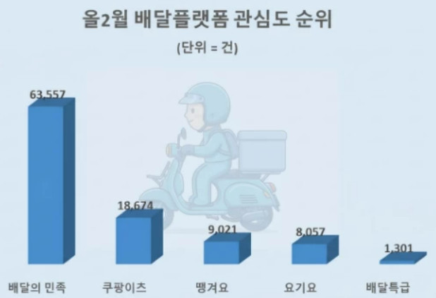 2월 한 달 10만 건 분석…소비자가 관심 쏟아진 배달 플랫폼 TOP 5